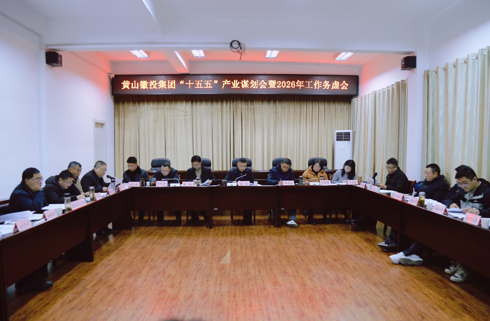1月12日,黃山徽投集團(tuán)黨委書記、董事長鮑劍主持召開集團(tuán)“十五五”產(chǎn)業(yè)謀劃會暨2026年工作務(wù)虛會,研究謀劃“十五五”及2026年重點工作,集團(tuán)領(lǐng)導(dǎo)班子成員、集團(tuán)各部門、各子公司主要負(fù)責(zé)人以及規(guī)劃編制單位負(fù)責(zé)人參加座談。
