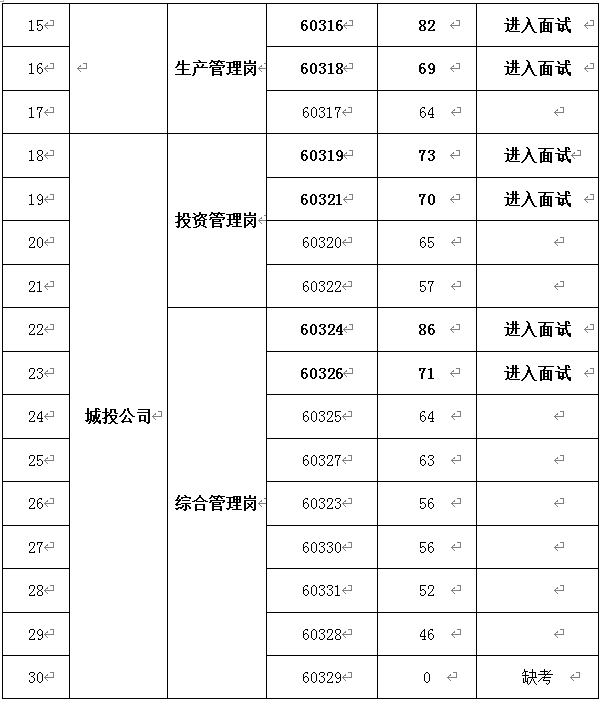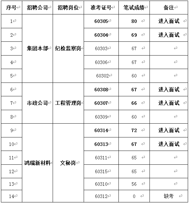 根據(jù)《黃山市徽城投資集團(tuán)招聘員工考試公告》,筆試工作已于2019年12月15日上午結(jié)束,現(xiàn)將筆試成績(jī)及進(jìn)入面試人員名單公布如下: