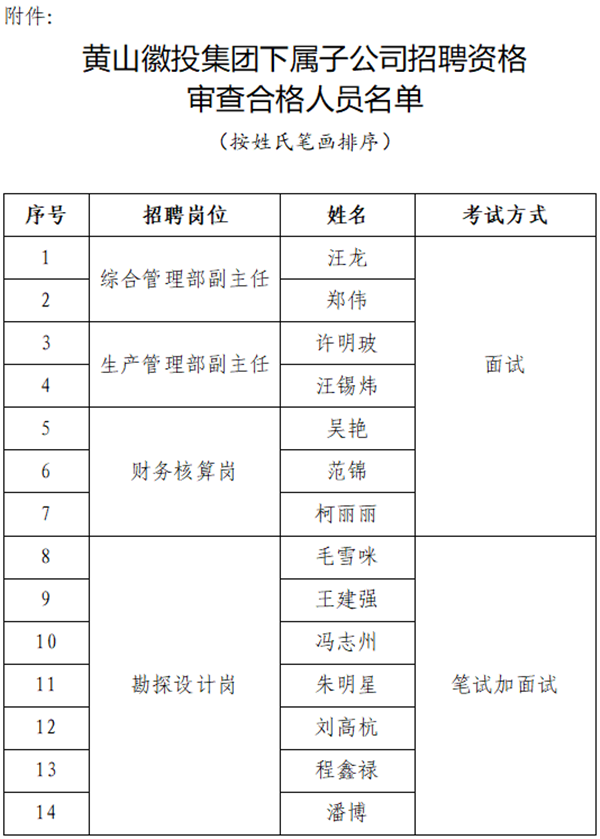 附件:黃山徽投集團(tuán)下屬子公司招聘資格審查合格人員名單