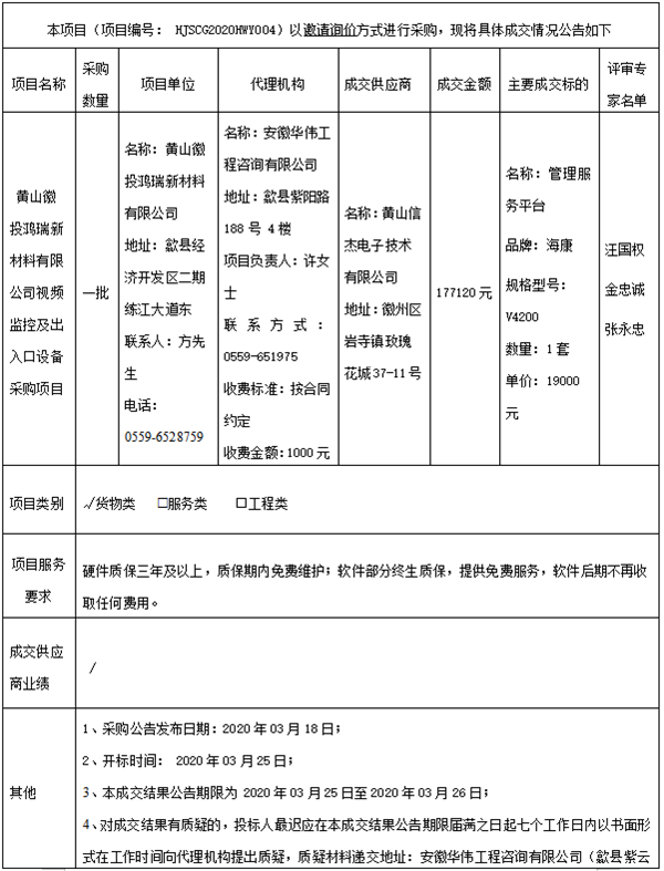 上一篇:黃山徽投鴻瑞新材料有限公司地磅系統(tǒng)采購項目成交結果公告