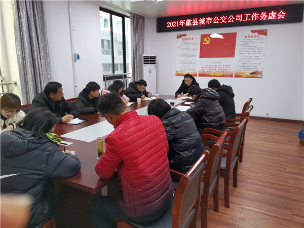 1月5日上午,歙縣城市公交公司在公司二樓會(huì)議室召開(kāi)了2021年務(wù)虛工作會(huì)議。公司執(zhí)行董事、經(jīng)理張華主持會(huì)議,全體管理人員參加會(huì)議。