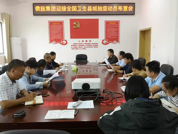 2019年10月12日上午,徽投集團(tuán)召開迎接全國(guó)衛(wèi)生縣城抽查動(dòng)員布置會(huì),國(guó)資公司分管領(lǐng)導(dǎo)、市政公司分管領(lǐng)導(dǎo)、物業(yè)公司代表、國(guó)資公司全體員工參加會(huì)議。