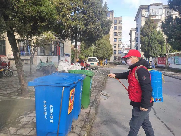 黨員志愿者方向協(xié)助包保小區(qū)開(kāi)展消毒工作