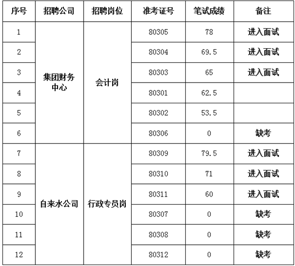 根據(jù)《黃山徽投集團(tuán)下屬子公司招聘員工考試公告》,筆試工作已于2020年11月14日上午結(jié)束,現(xiàn)將筆試成績(jī)及進(jìn)入面試人員名單公布如下: